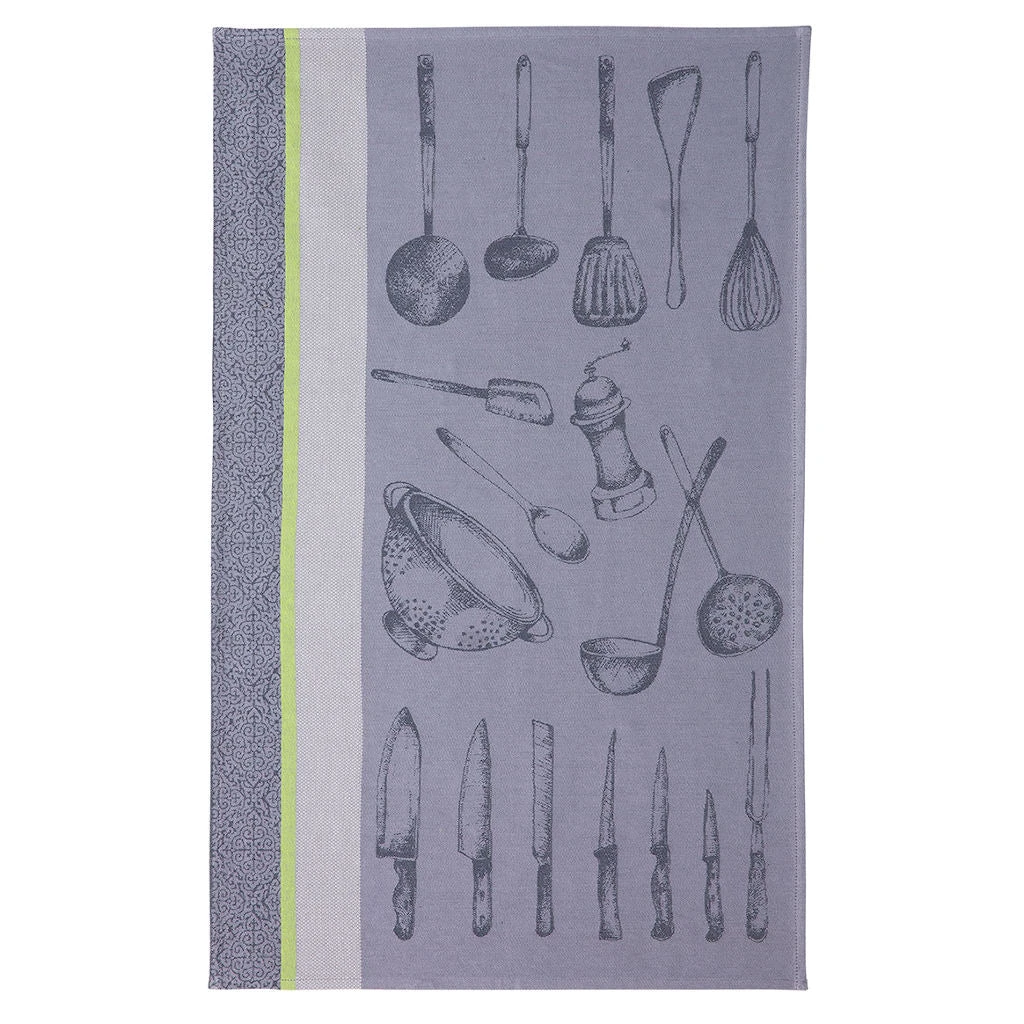 The Ustensils du Chef (Chef’s Utensils) jacquard dish towel from Coucke will brighten your kitchen and your day. This gray towel measures 20″ x 30″ and features a detailed illustration of kitchen utensils. Beautiful and soft, this towel will serve you well.
