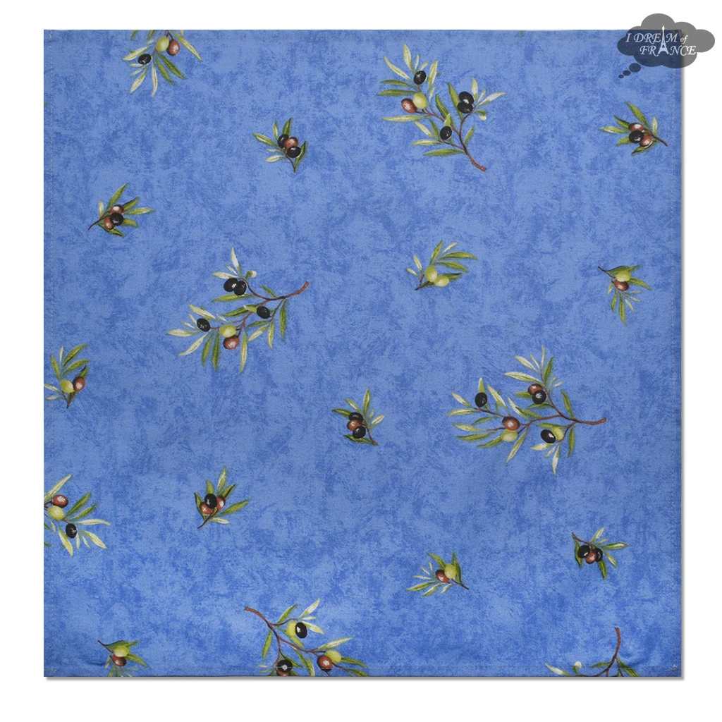 From Provence, these cotton napkins will complement our Clos des Oliviers blue line or just look great on their own. It features olives branches on a blue background in an all-over pattern. They are 100% cotton. Napkins are NOT coated. These napkins measure 18″ across. Sold individually. Made in France.