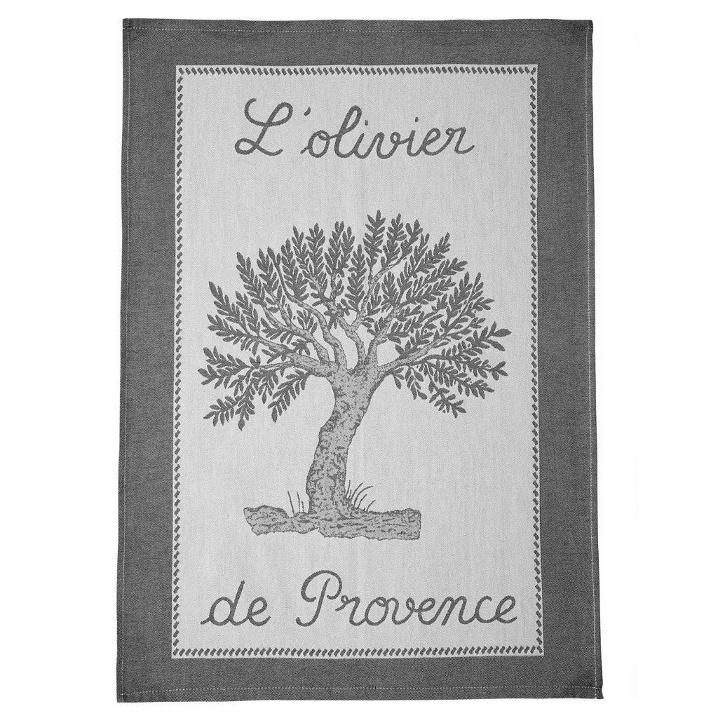 The L’ Olivier de Provence (olive tree of Provence) jacquard dish towel from Coucke will brighten your kitchen and your day. Olive trees are a staple of the Provence landscape, and olive oil is is a staple of the Provencal kitchen! This black towel measures 20″ x 30″ and features a detailed illustration woven into the towel of a lush olive tree. Beautiful and soft, this towel will serve you well.