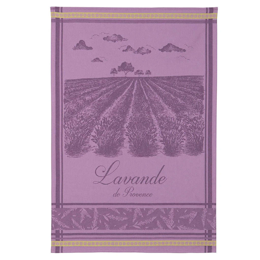 The Champs de Lavande (Lavender Fields) jacquard dish towel from Coucke will brighten your kitchen and your day. This purple towel measures 20″ x 30″ and features a detailed illustration woven into the towel of a lavender field and the words Lavande de Provence (Provence Lavender). Beautiful and soft, this towel will serve you well.