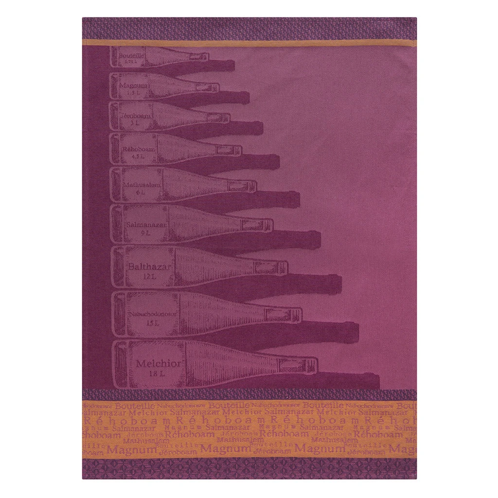 The Gabarits Bouteilles de Vin (Wine Bottle Sizes) jacquard dish towel from Coucke will brighten your kitchen and your day. This burgundy and orange tea towel measures 20″ x 30″ and features a detailed illustration woven into the towel of the different sizes of wine bottles. It seems like there are 9 sizes, from the typical 750ml bottle to the massive Melchior which holds almost 5 gallons! Beautiful and soft, this towel will serve you well.