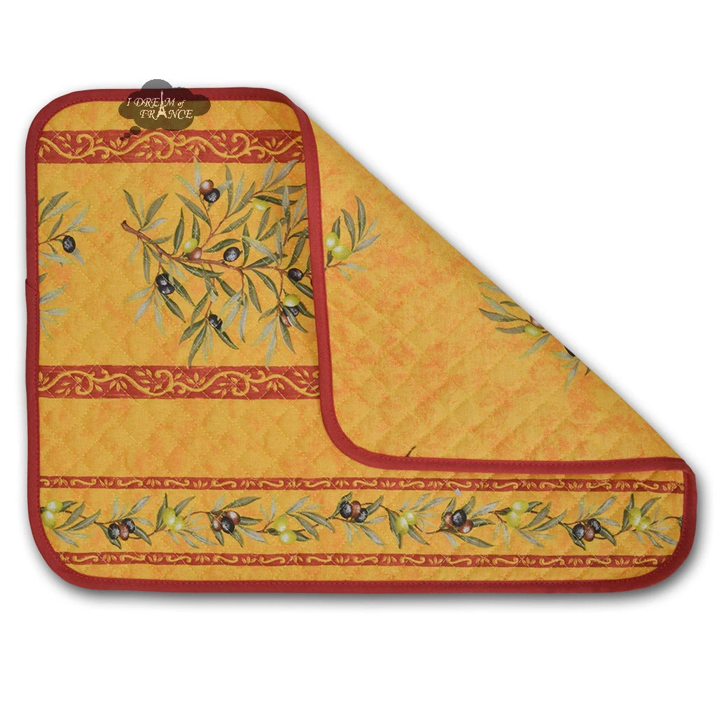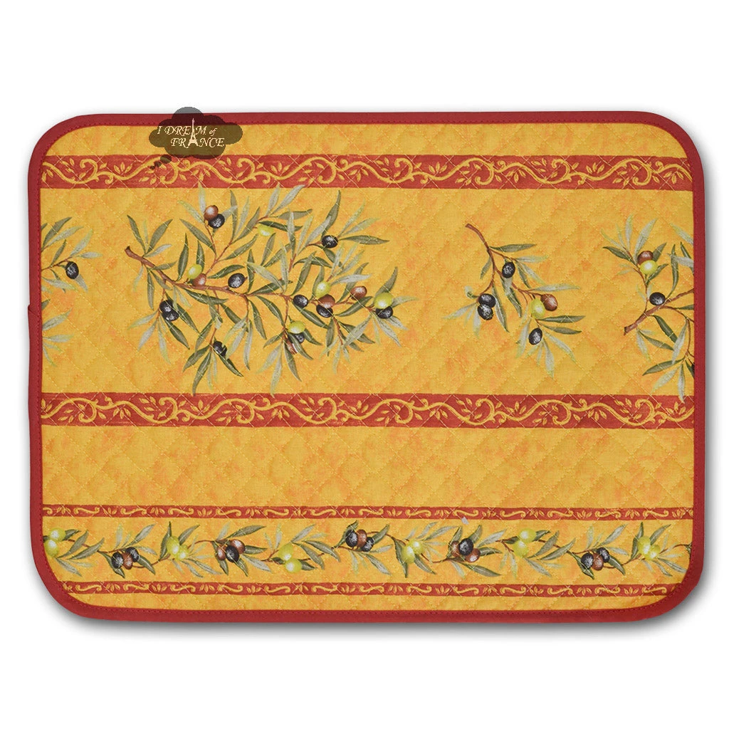 From Provence, these quilted cotton placemats will complement our Clos des Oliviers Yellow line or just look great on their own. It features olive branches on a golden yellow background. They are 100% cotton. These placemats measure 17×11.5″. Sold individually. Made in France.