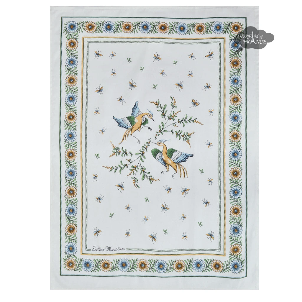 From Tissus Toselli, this cotton tea towel will complement our Moustiers line or just look great on its own. It features a design inspired by the famous Moustiers ceramics on a natural background. This towel measures 20×27″. Sold individually.