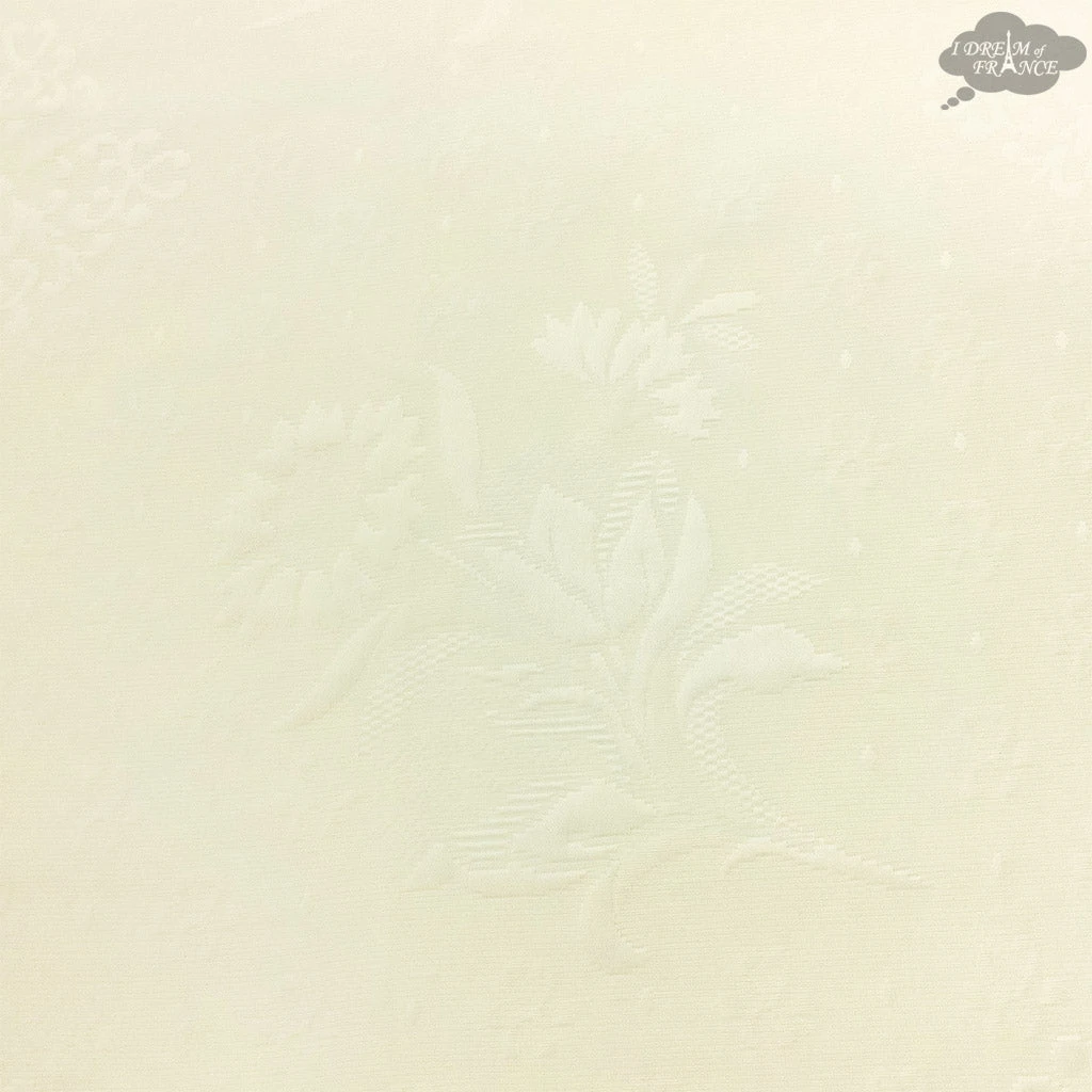 From Tissus Toselli, this matelassé tablecloth features a bright and cheerful Roses and Lavender border on a patterned light cream background center. It is 60% cotton and 40% polyester. Made on a jacquard loom, the center fabric is thick and soft and has a raised pattern that gives it a quilted look. The border is sewn around and is the same fabric used on other products of the Roses and Lavender line.