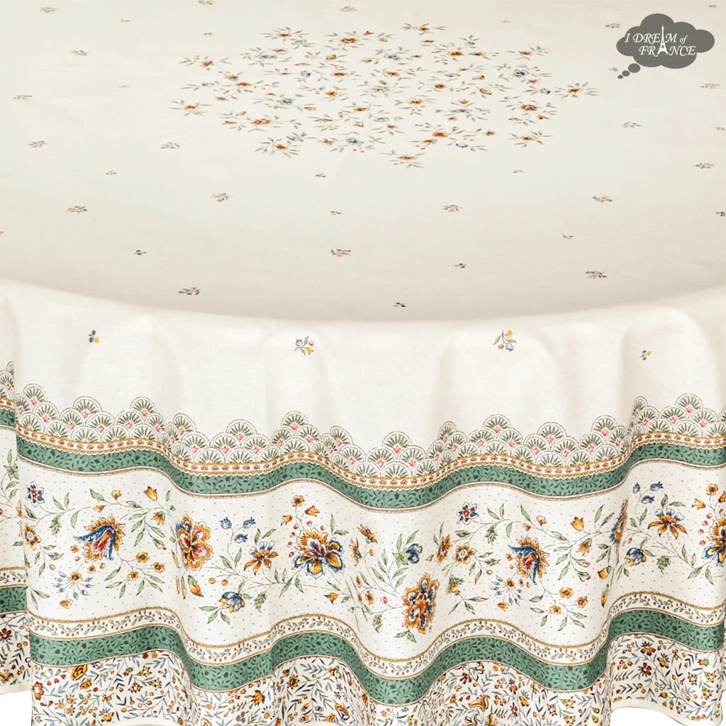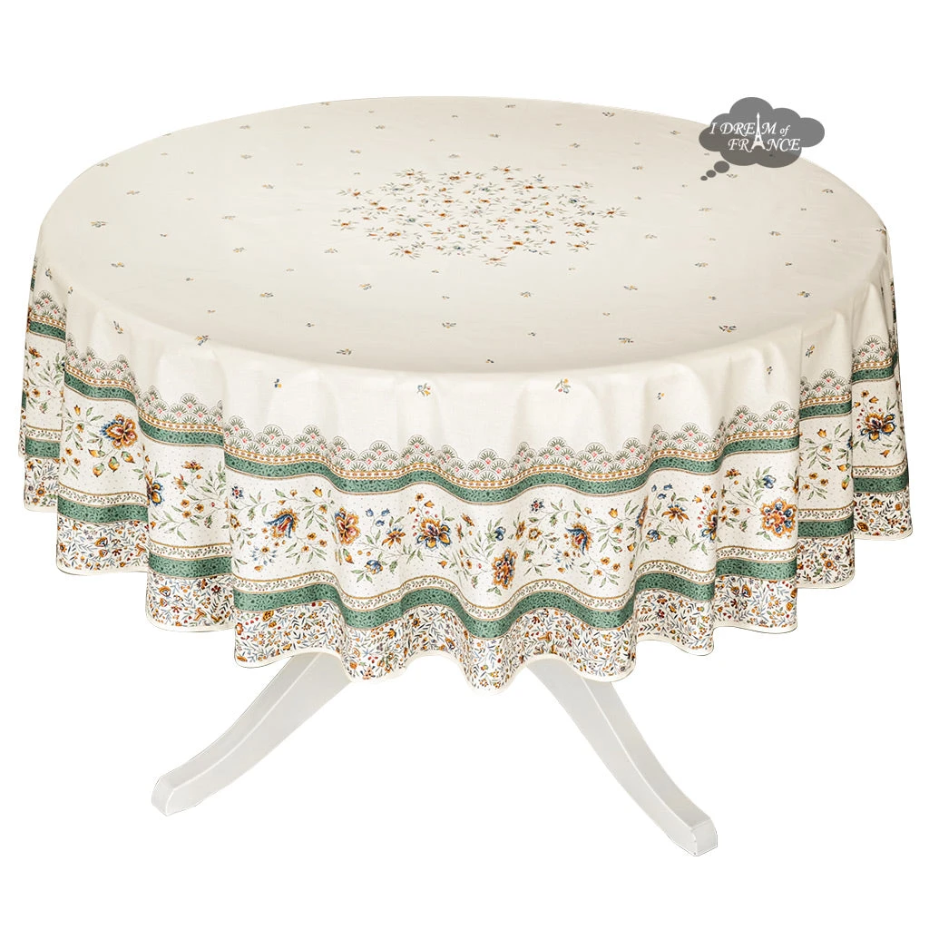 Be the first to review “Table Linens 70″ Round Beaucaire Cream & Green Acrylic-Coated Cotton Tablecloth By L’Ensoleillade” Cancel reply