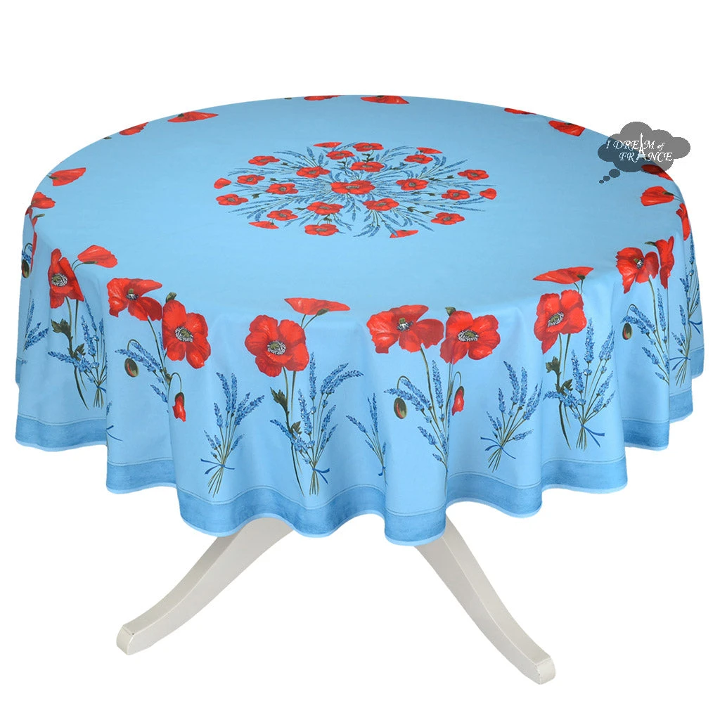 Be the first to review “Table Linens 70″ Round Poppies Sky Blue Acrylic-Coated Cotton Tablecloth By Tissus Toselli” Cancel reply