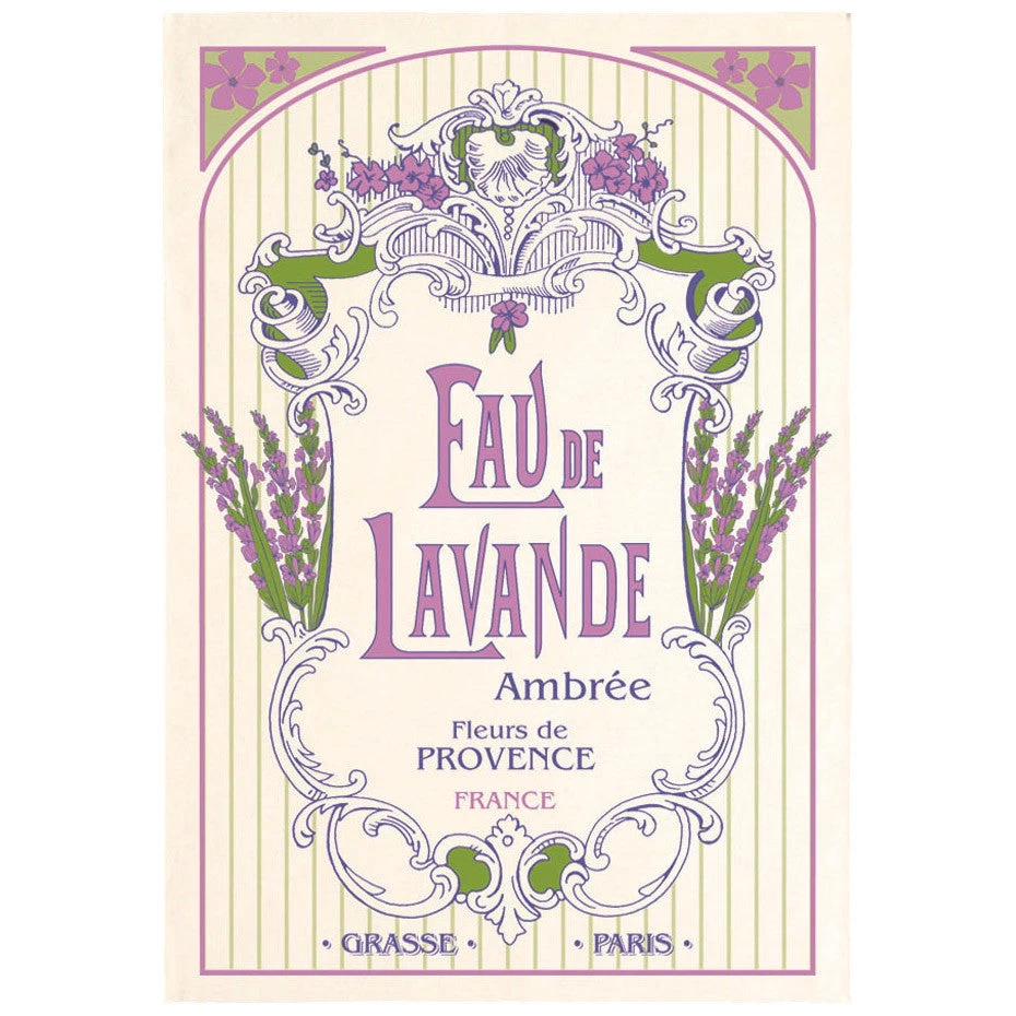 This Eau de Lavande towel shows a beautiful French Provencal lavender perfume label. Just like every Torchons et Bouchons towel, this towel is printed on heavy 100% cotton fabric using food safe dyes.